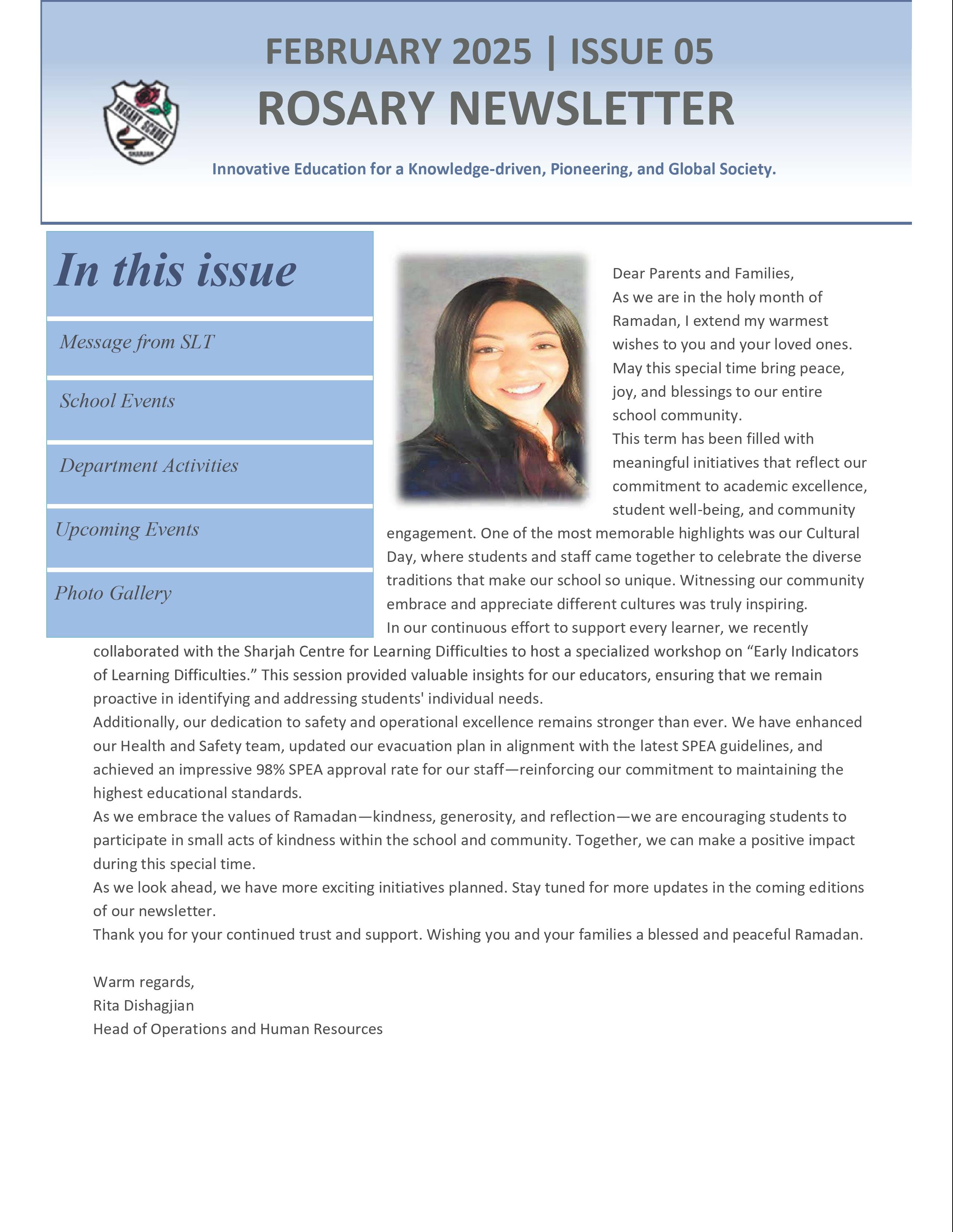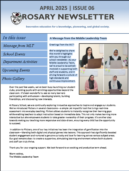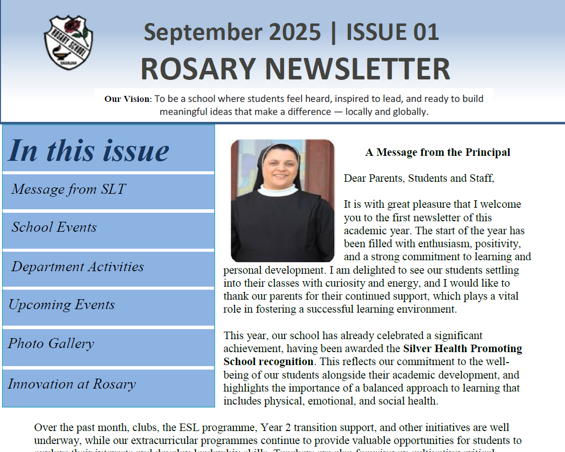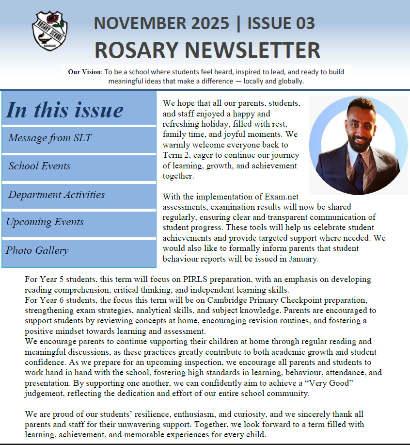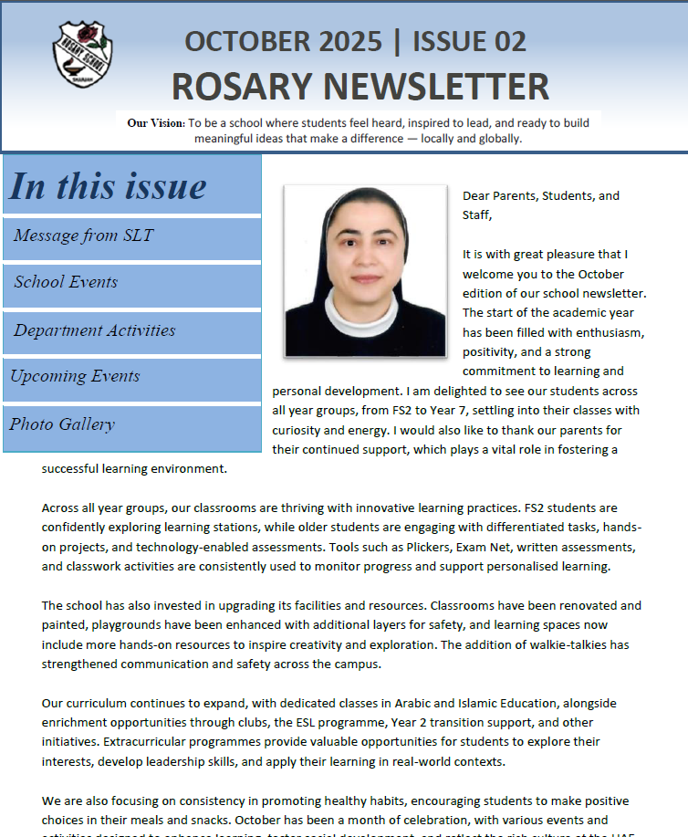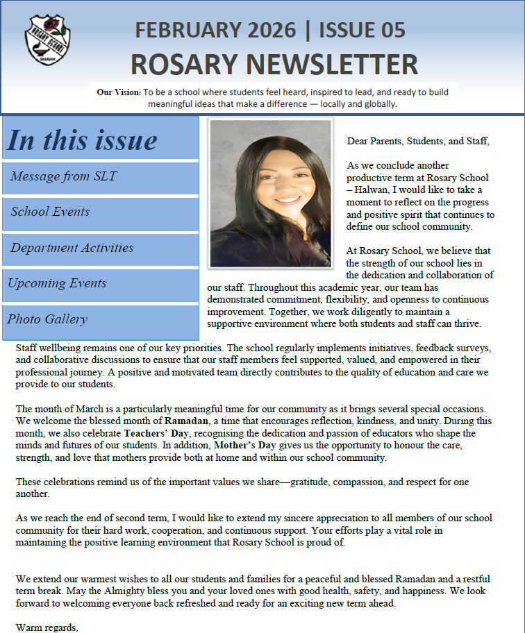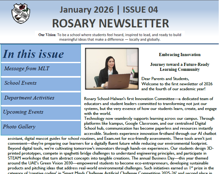 Journey toward a Future-Ready Learning Community Dear Parents and Students, Welcome to the first newsletter of 2026 and the fourth of our academic year! Rosary School-Halwan's first Innovation Committ ...